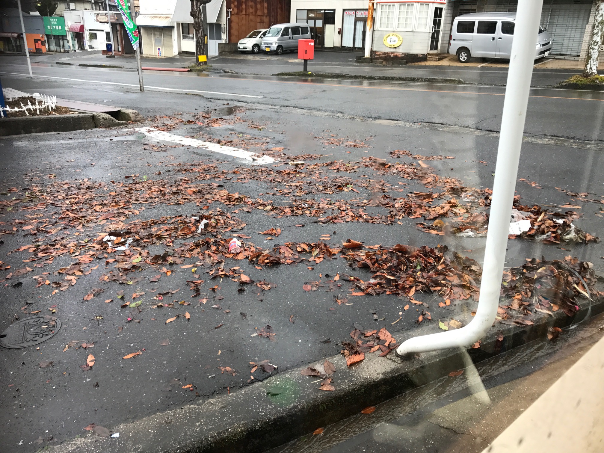 なぜ水道局かといえば、指泉堂から坂道を上がったところに水道局の貯水場があり、そこから葉っぱがたくさん落ちて雨の日は流れてきます。